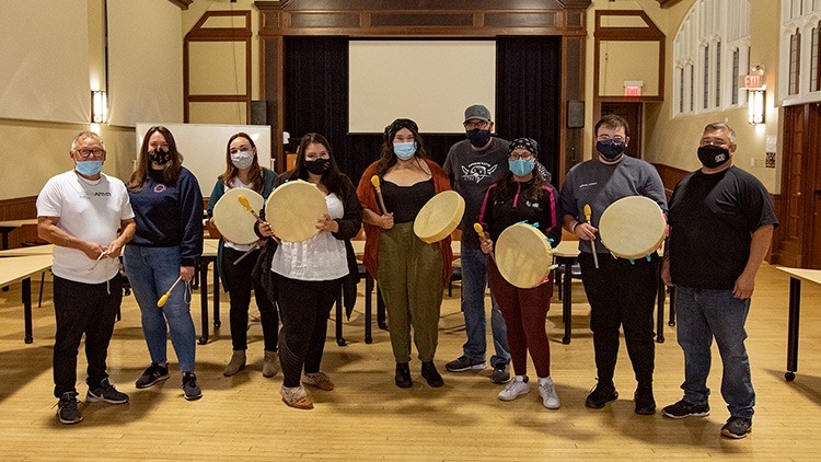 Participants take part in a Mi’kmaq hand drum workshop hosted at StFX