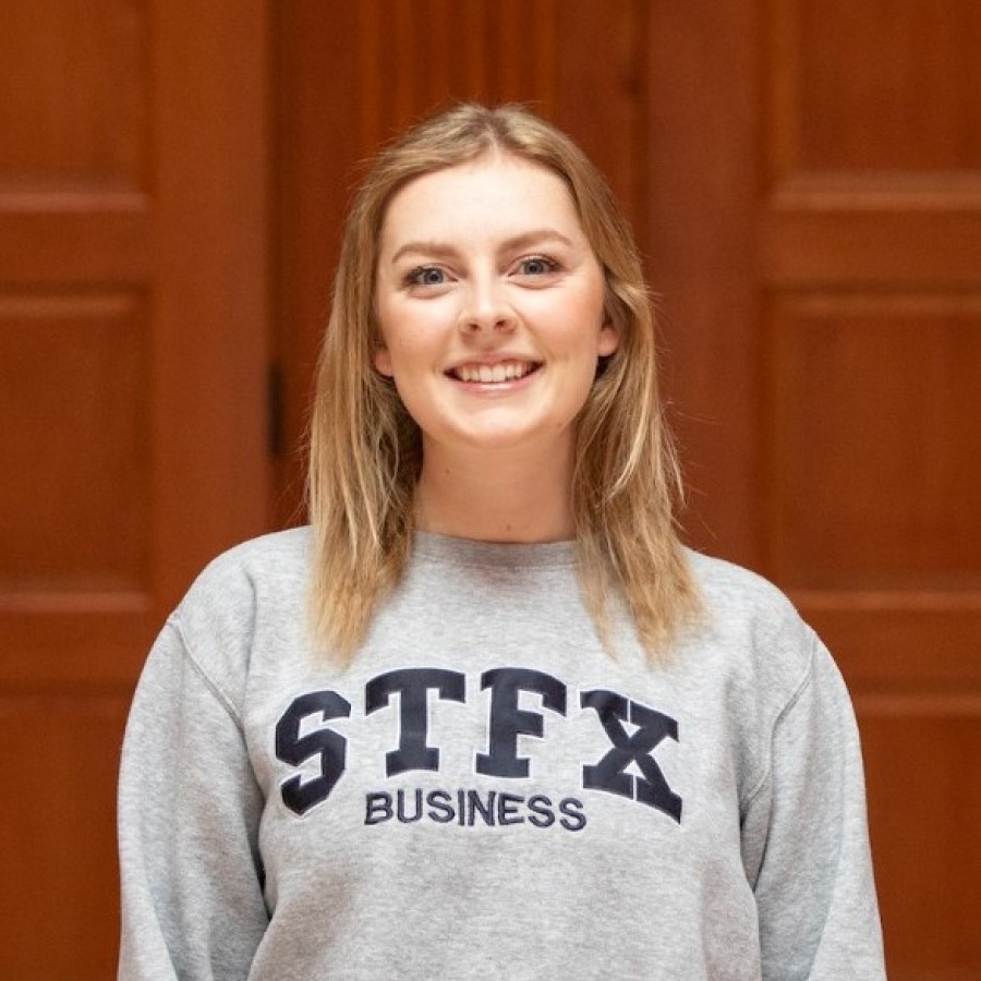 My name is Julianna Drake, a third-year student pursuing a joint Honours Degree in Business and Economics at StFX. I strive to balance academic excellence with community service and hold the position of Vice President of Finance and Operations for the Students’ Union, advocating for affordability and enhancing campus services. Being a bursary recipient eases financial burdens and allows me focus on my studies, leadership roles, and overall well-being. Thanks to the donors of my bursary, I feel a sense of encouragement, empowering me to pay it forward in the future.