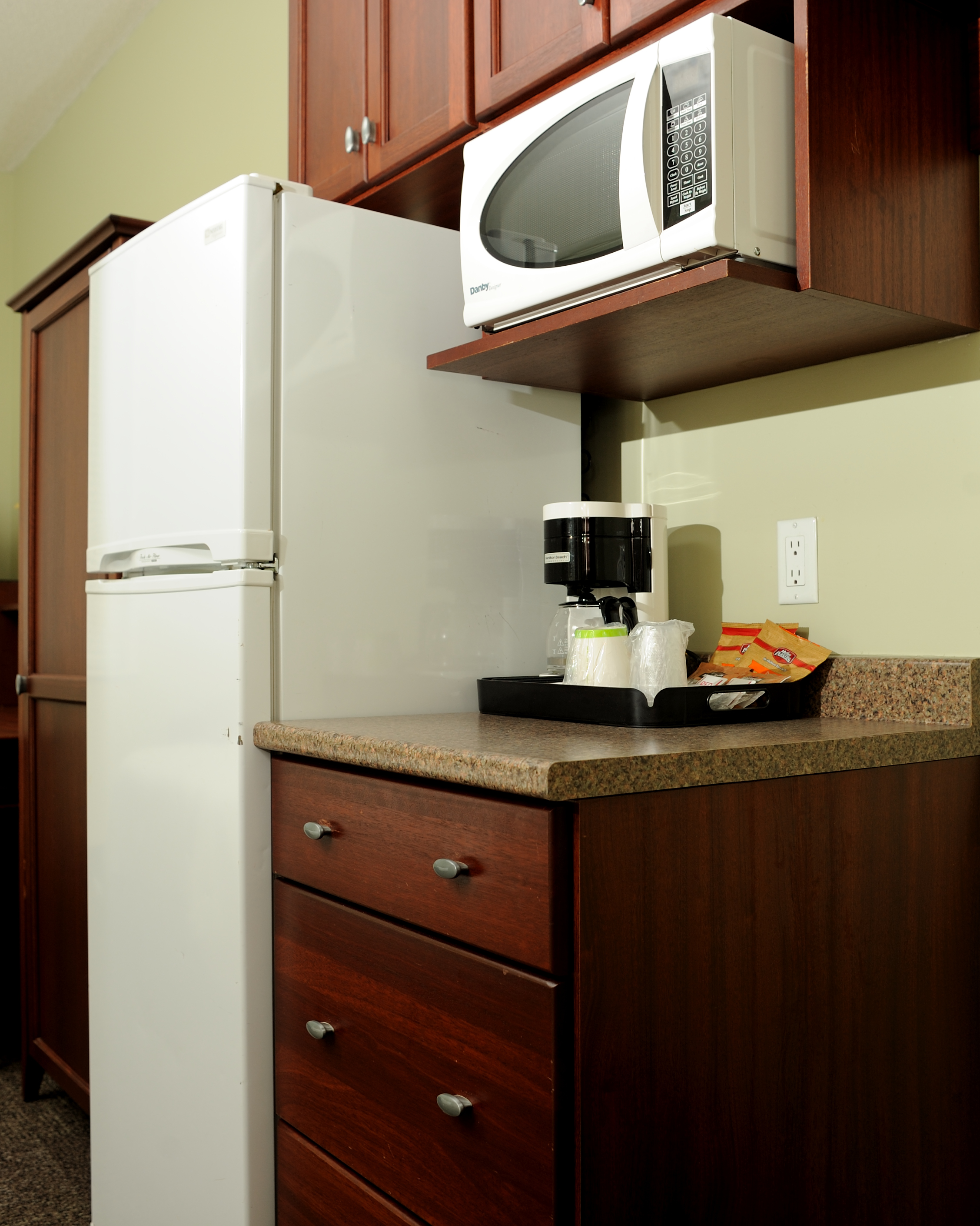 All rooms include the following amenities: complimentary high-speed Wi-Fi, a microwave, fridge, private washroom with shower/bathtub (rooms with walk-in shower available upon request), and onsite laundry facilities. Shared kitchens and lounge areas are available on each floor.
