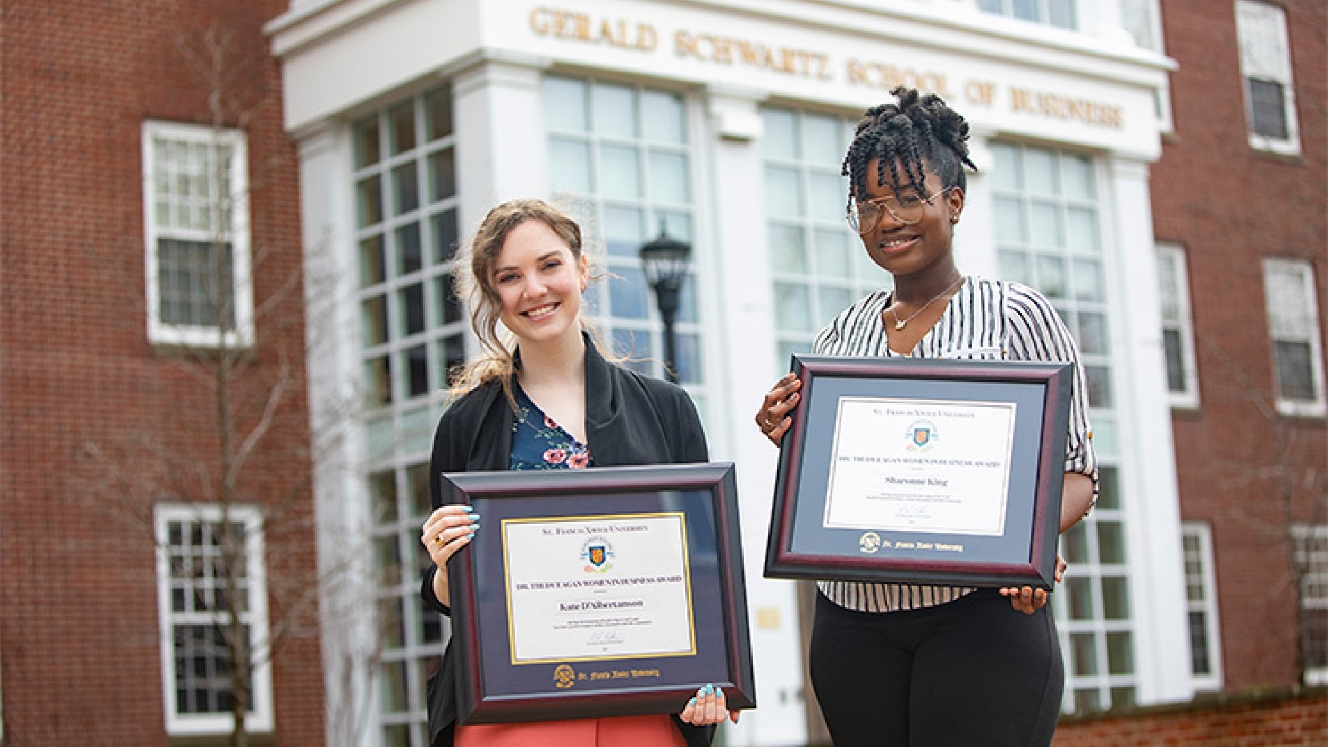 Sharonne King and Kate D’Albertanson, fourth year StFX Schwartz School of Business students, are this year’s recipients of the Dr. Trudy Eagan Women in Business Awards, which recognize female students for their leadership, academic achievement, and outstanding engagement with their communities.
