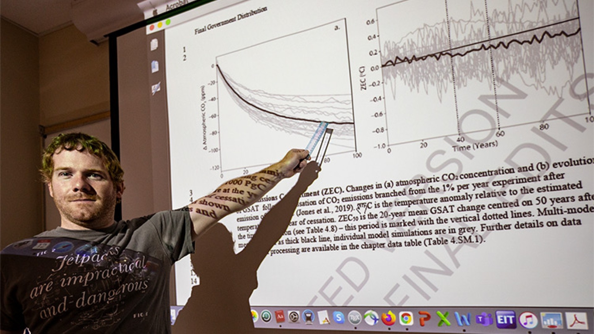 Dr. Andrew MacDougall, pictured here pointing to graphics he created for the latest IPCC report